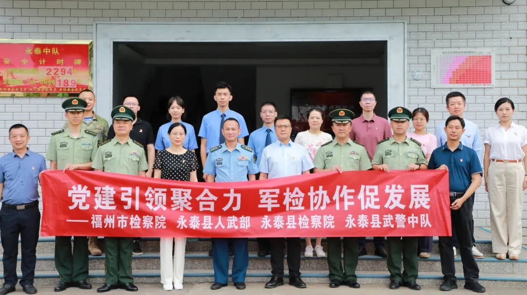 为深入贯彻落实习近平法治思想和习近平强军思想,落实党的双拥工作,强化军检协作,日前,福州市检察院、永泰县人武部、永泰县检察院联合武警永泰中队组织开展送法进军营暨“党建引领聚合力 军检协作促发展”主题党日活动。永泰县委常委、人武部部长颜建伟,县检察院党组书记、检察长程志宏,福州市检察院第二检察部主任尹琳,武警永泰中队主官等一行参加活动。
