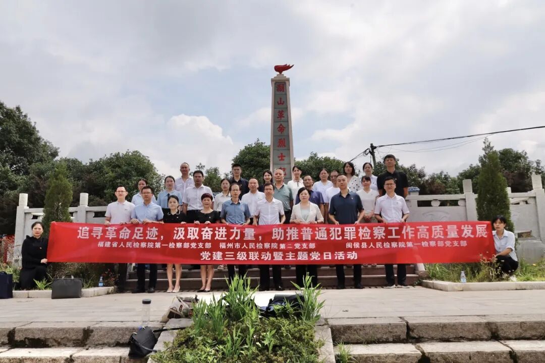 为进一步深入学习贯彻党的二十大精神,纵深推进学习贯彻习近平新时代中国特色社会主义思想主题教育,推动党建与业务工作深度融合,8月29日,福建省人民检察院第一检察部党支部联合福州市人民检察院第二党支部、闽侯县人民检察院第一党支部在闽侯县大湖乡开展“追寻革命足迹,汲取奋进力量,助推普通刑事犯罪检察工作高质量发展”党建三级联动暨主题党日活动。