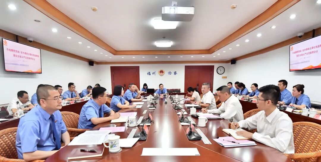 为认真落实中央、省委、市委全面从严治党决策部署,一以贯之正风肃纪反腐,不断完善检察权运行制约监督机制,引领全面从严管党治检走向深入,6月5日,市检察院党组与驻市委政法委纪检监察组召开联席会议,专题研究福州市检察机关全面从严治党和党风廉政建设工作。