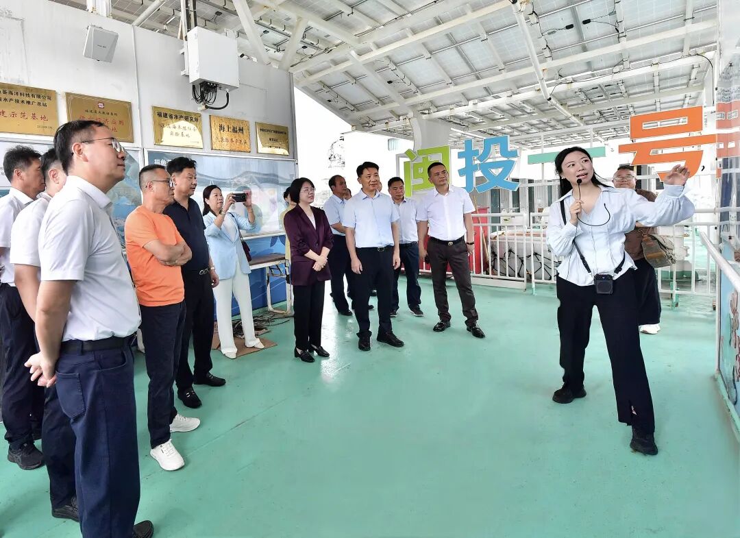 人大代表参观全国首台智能化渔旅融合的半潜式深海养殖平台——“闽投一号”,实地查看海洋生态保护和深海养殖设备建设运行情况。听取福州市检察机关关于开展“海上福州·检护蔚蓝”专项行动的成果汇报,全面了解检察机关服务“海上福州”建设的创新实践。