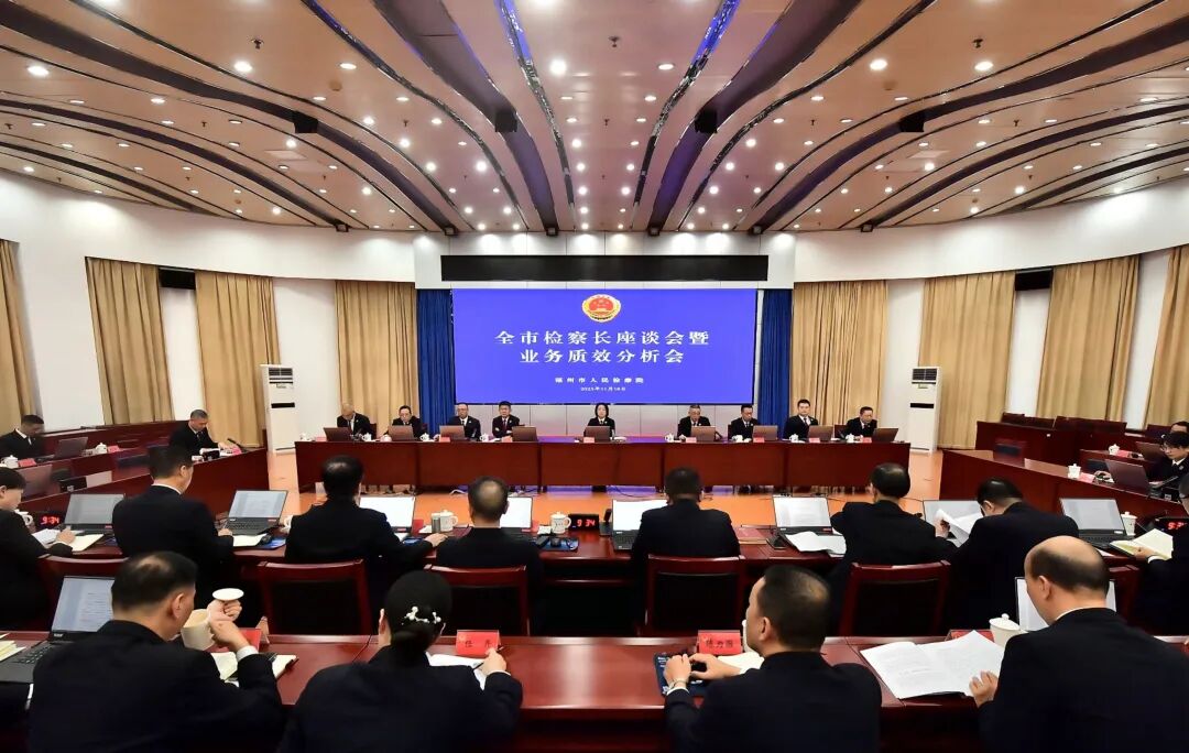 11月18日,福州市检察院召开全市检察长座谈会暨业务质效分析会,学习贯彻党的二十届四中全会精神,传达大检察官研讨班、全省检察长座谈会精神,分析研判全市检察机关办案质效,研究一体抓实“三个管理”,推进检察工作现代化高质量发展。市检察院党组书记、检察长江莉出席会议并讲话。