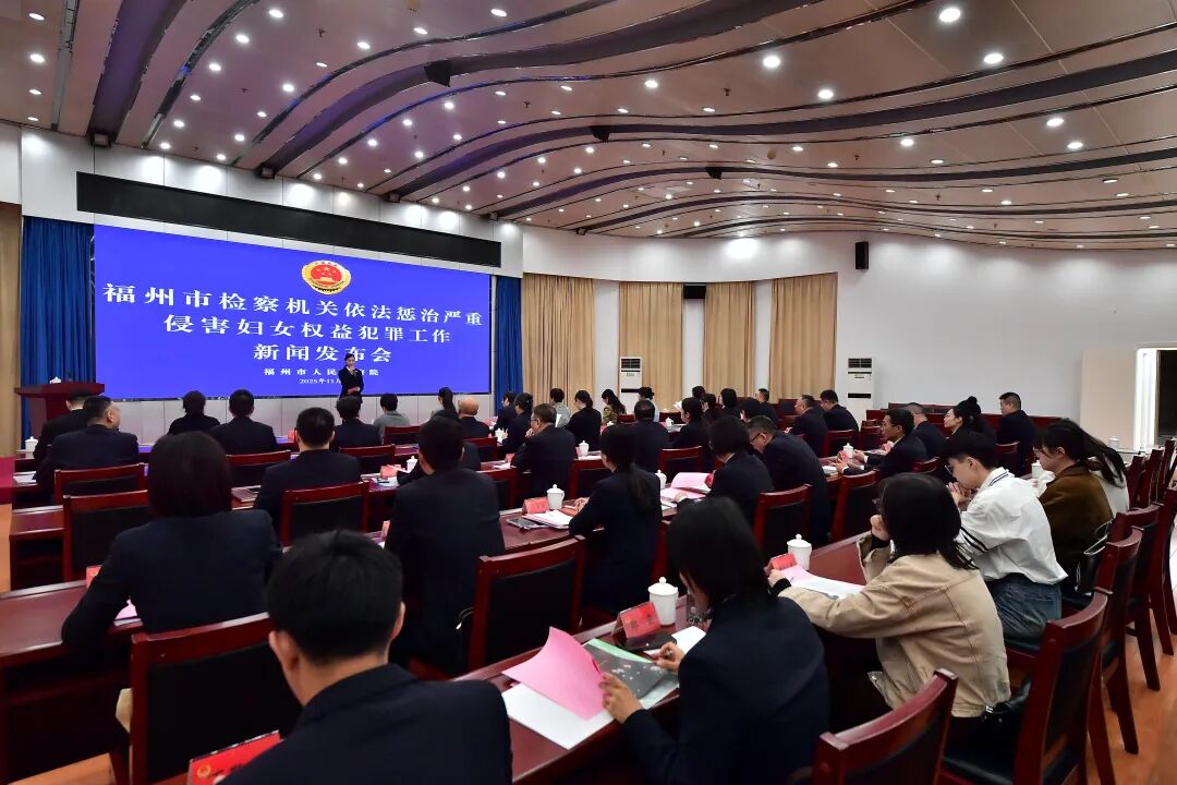 在第27个国际反家庭暴力日到来之前,福州市检察院召开“依法惩治严重侵害妇女权益履职情况”新闻发布会,发布近年来福州市检察机关惩治严重侵害妇女权益犯罪、维护妇女权益工作白皮书和一批典型案例,并对下一步工作作出了展望。市检察院党组成员、副检察长陈喆,市妇联挂职副主席江心雨,市人大代表、政协委员,市妇联、市中级人民法院、市公安局及两级检察院相关同志,人民网福建频道、福建法治报、福州日报、福州电视台等媒体单位参加发布会。